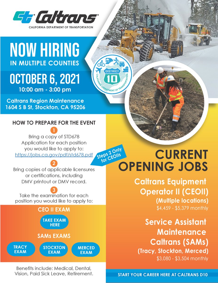 Caltrans District 10 On Twitter District 10 Will Hold A Hiring Event From 10 A M 3 P M On Oct 6 At The Region Maintenance Facility 1604 South B Street Stockton Ca 95206 Current Openings